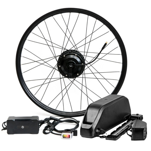 Полный комплект для переоборудования обычного велосипеда в электровелосипед. набор заспицованы в обода 24", 26", 28", 29" переднего колеса. Простая установка и монтаж. Мощное и компактное зарядное. Водонепроницаемые, позолоченные Разъёмы на силовой части.
