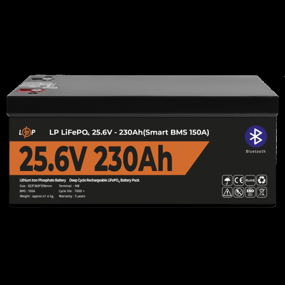 Аккумулятор LP LiFePO4 25,6V - 230 Ah (5888Wh) (Smart BMS 150А) с BT пластик