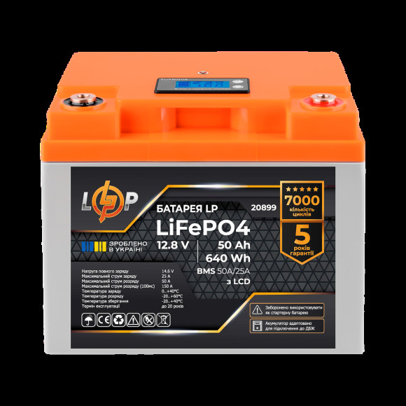 Аккумулятор LP LiFePO4 для ИБП 12V (12,8V) - 50 Ah (640Wh) (BMS 50A/25A) пластик