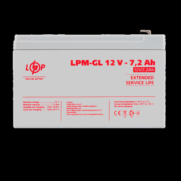 Аккумулятор гелевый LPM-GL 12V - 7.2 Ah