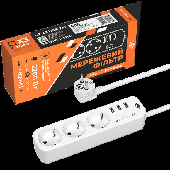 Сетевой фильтр PREMIUM LP-X3 USB 2 м White (2200Вт)