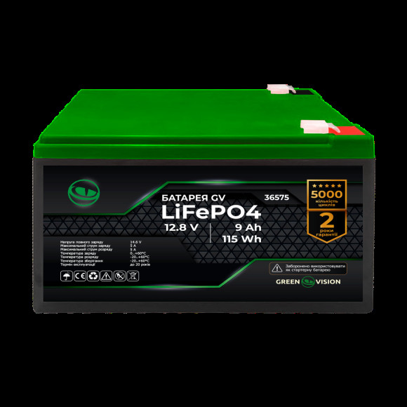 Аккумулятор GV LiFePO4 12V (12,8V) - 9 Ah (115 Wh)