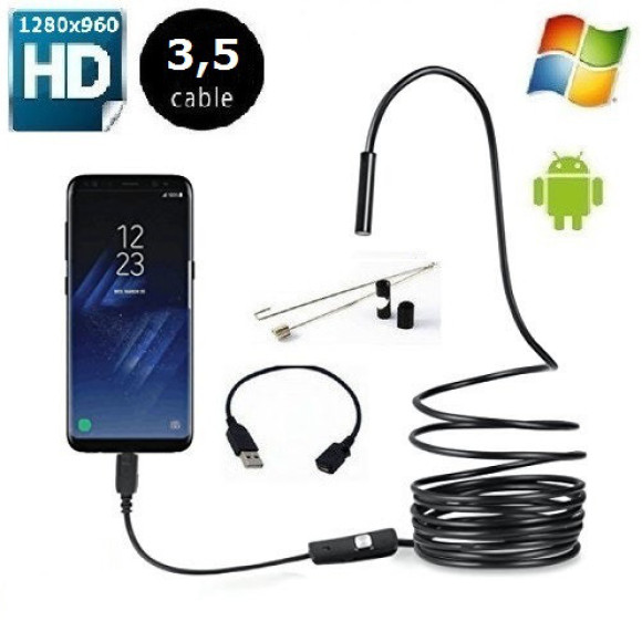Эндоскоп USB-microUSB HD 1280 * 960 3,5 м. жесткий кабель водонепроницаемый