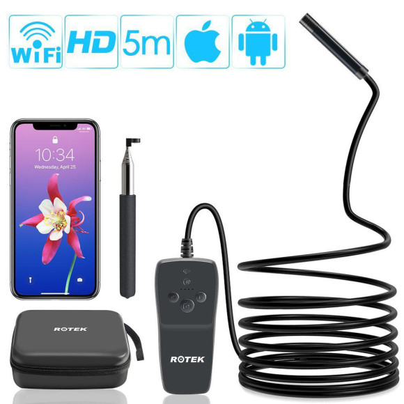 Эндоскоп Rotek WiFi HD 5м кабель 1600x1200 водонепроницаемый IP 68 телескоп-манипулятор