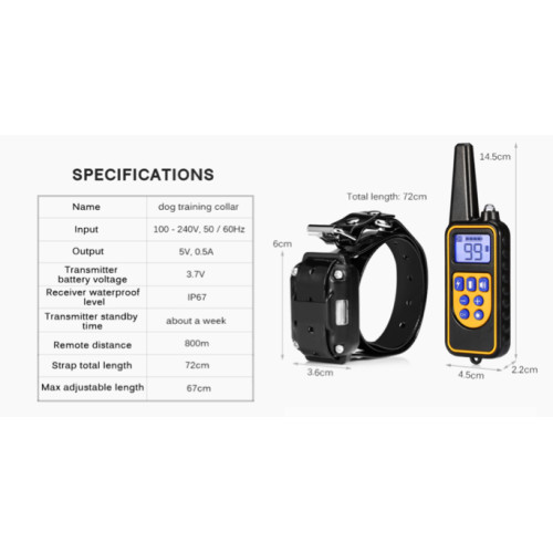 Електронашийник для дресирування собак DTC-800 – тренувальний нашийник з пультом дистанційного керування, який допоможе навчити Вашого собаку основним командам та вирішити проблеми з неконтрольованою поведінкою Вашого вихованця. Має потужний ліхтарик на пульті, великий інформативний дисплей із підсвічуванням. Забезпечує зв'язок власника та собаки в діапазоні 800 метрів, що робить його ідеальним не лише для дому, а й для будь-якої прогулянки. Підходить для всіх порід собак вагою понад 5 кг. Довжина нашийника регулюється не більше 14-67 див.
